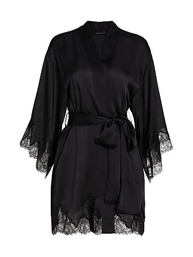 Шелковый халат с кружевной отделкой Giselle от Kiki De Montparnasse, с шалью и поясом