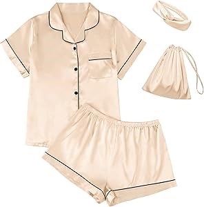 Комплект включает в себя 4 предмета: шелковый пижамный наряд и стильные резинки для волос. Элегантный дизайн и мягкая ткань обеспечивают комфортный и стильный вид, как дома, так и перед сном.