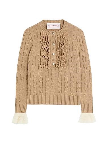 Шерстяная кофта Valentino Garavani с рюшами на груди и манжетах, 100% шерсть, Италия
