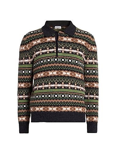 Яркий интульсионный рисунок подчеркивает этот поло-свитер Loewe, оформленный ребристым краем и 3-кнопочной планкой.