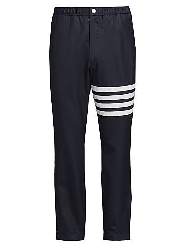 Шерстяные штаны с резинкой и застежкой на кнопки от Thom Browne, украшенные четырехполосным дизайном