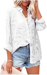 Блуза с длинным рукавом и цветочным принтом, выполненная из прозрачной сетки, идеально подходит для офисной работы или повседневного ношения.