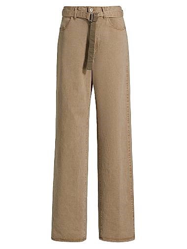 Широкие джинсы Sacai с поясом из 100% хлопка, с пятью карманами, произведены в Японии