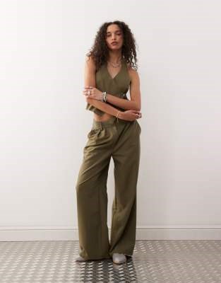 Широкие хаки брюки COLLUSION с завышенной талией, функциональными карманами и потайной молнией