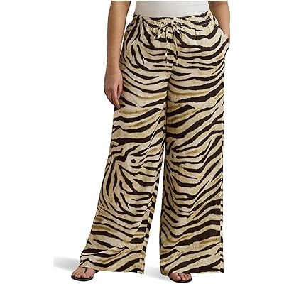 Широкие льняные брюки с зебровым принтом в больших размерах от LAUREN Ralph Lauren, высокая посадка, эластичный пояс