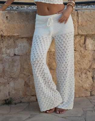 Широкие пляжные брюки 4th &, Reckless из хлопка с вязкой крючком и завязкой на талии, часть комплекта