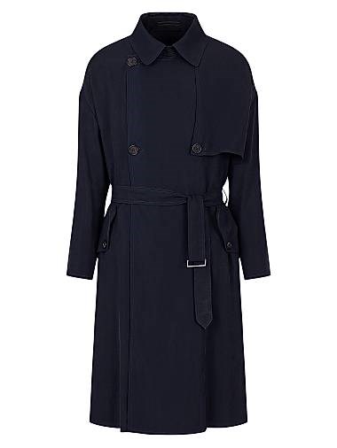 Плащ от Giorgio Armani представляет собой стильный двубортный силуэт с широким воротником.