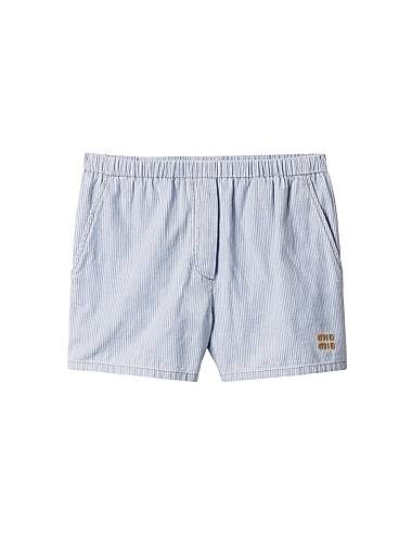 Шорты-бермуды Miu Miu из кружевной ткани в полоску с вышитым логотипом и боковыми карманами
