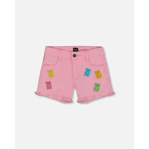 Наши джинсовые шорты с вышивкой медвежат в ярких цветах удивительно яркие! Они выполнены из розового стрейч-денима и имеют классический крой, карманы спереди, застежку на молнии и пуговице, а также необработанные края. Вышитые патчи в виде желейных медведей делают их по-настоящему милыми!