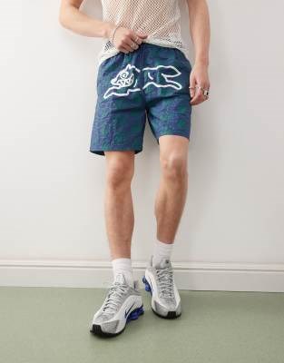 Шорты для купания ICECREAM с принтом бегущей собаки, синие, с эластичным поясом и карманами