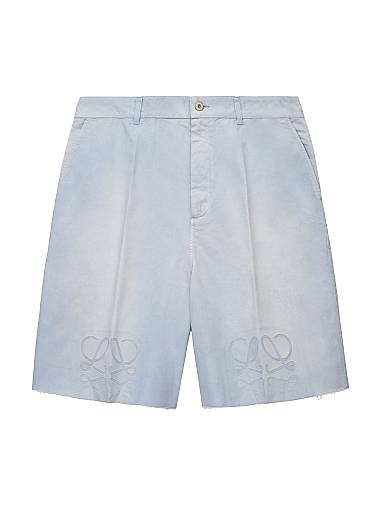 Шорты из коллекции LOEWE x Paula's Ibiza, созданные креативным директором Джонатаном Андерсоном, отражают беззаботный стиль жизни на острове. Они выполнены из качественного денима с заломленным передом и вышитым логотипом бренда. Шорты имеют необработанный подол, задние карманы и кожаную нашивку с логотипом.