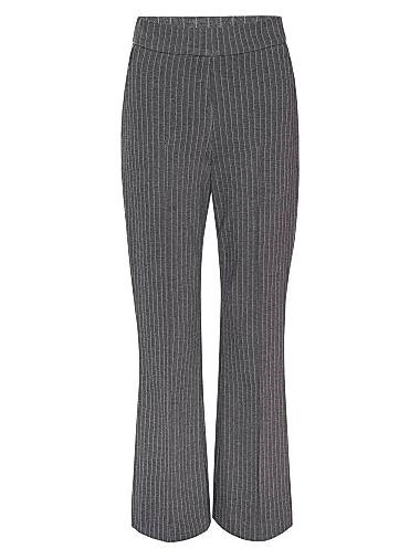 Эти штаны с полоской из мягкого растягивающегося материала имеют высокую талию и расклешенные штанины.