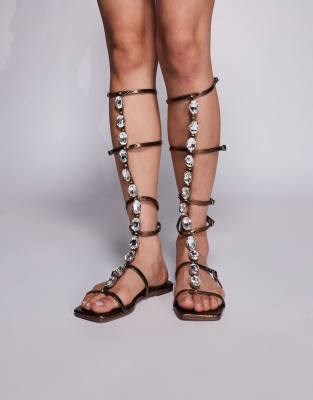SIMMI Shoes Сандалии Simmi London Wide Fit Zenya в бронзовом металл с каменной отделкой и регулируемыми ремешками