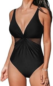 Дизайн: Купальник имеет глубокий V-образный вырез, узел спереди, среднюю поддержку груди, сборчатую сетку и регулируемые бретели, что обеспечит уверенность на пляже или у бассейна.