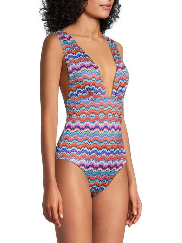 Слитный купальник Milly с металлическим блеском, V-образным вырезом и ярким шевронным принтом