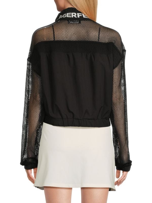 Современный стиль: Элегантная куртка от Karl Lagerfeld Paris сочетает в себе сплошной лифт и сетчатые лонгсливы.