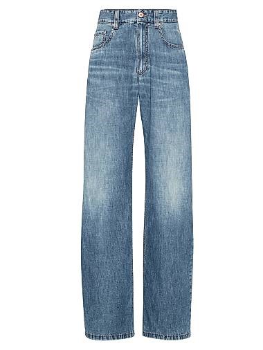 Современные свободные джинсы из легкого итальянского денима Brunello Cucinelli на кнопке с карманами
