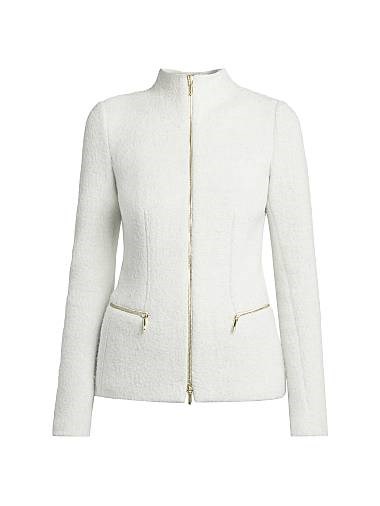 Куртка Luxe Blend от Giorgio Armani выполнена из сочетания хлопка, шерсти и кашемира, отличается спортивным стилем с застёжкой на молнии спереди.
