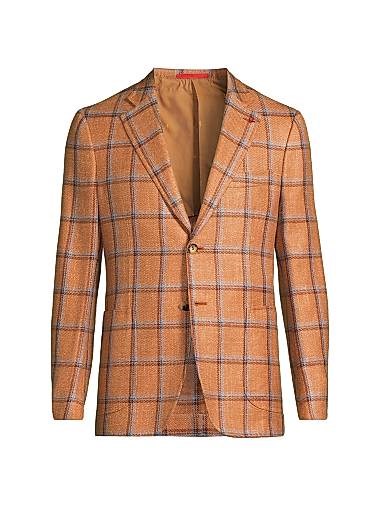 Сделанный из смеси шерсти, шелка и льна, этот спорткостюм от Isaia выделяется смелым клетчатым принтом.