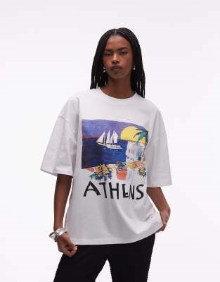 Стильная белая футболка Topshop оверсайз с графикой Athens, 100% хлопок