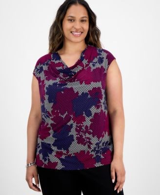 Добавьте нотку элегантности в ваш гардероб с этой блузкой большого размера от Kasper, украшенной драпированной горловиной.