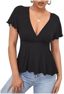 Стильная летняя женская футболка Verdusa с глубоким V-образным вырезом, рюшами и коротким рукавом в стиле пеплум
