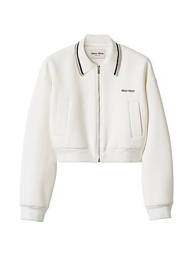 Стильная трикотажная куртка-блузон Miu Miu с длинными рукавами и вышивкой логотипа, 100% хлопок