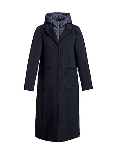 Стильное длинное пальто Maximilian с капюшоном и пуховой вставкой на спине, 90% шерсти и 10% кашемира