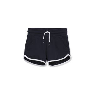 Шорты имеют эластичный пояс с завязкой, спортивную отделку контрастного цвета и выполнены из мягкого френч-терри, что обеспечивает удобство и стиль во время отдыха и игр.