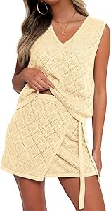 Дизайн верха: Летний лонгслив без рукавов с V-образным вырезом и ажурным узором, свободный крой, идеален для отдыха и летних прогулок.