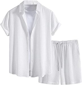 Комплект состоит из рубашки с короткими рукавами и шорт с завязками на талии, идеально подходит для повседневной носки, отпуска, круиза, пляжа, свиданий и других случаев.