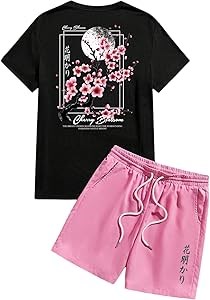 Стильный молодёжный костюм Gorglitter: футболка с японским принтом и шорты для отдыха