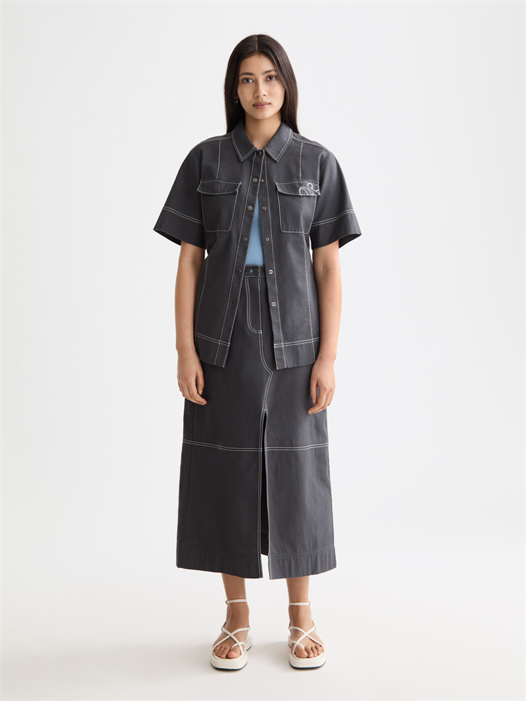 Эта стильная классика с коротким рукавом выполнена из качественного денима и имеет зауженный крой на талии для более структурированного и утончённого образа.