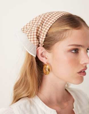 Sui Ava Бежевый клетчатый головной платок с завязками — универсальный аксессуар для любого стиля