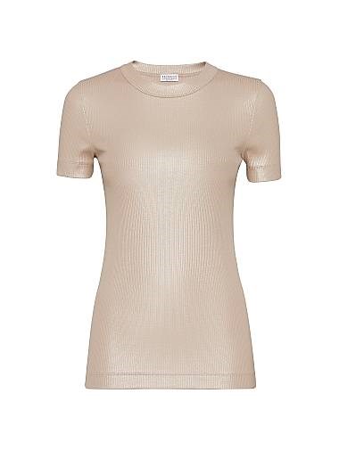 Сверкающая хлопковая джерси теннисная футболка с декором Brunello Cucinelli, Италия