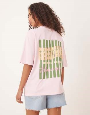 Светло-розовая оверсайз футболка с графическим принтом и круглым вырезом от Gina Tricot