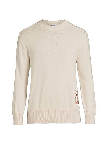 Свитер с круговым вырезом Burberry выполнен из шерсти и украшен ярлыком с фирменным клетчатым принтом на левом нижнем крае.