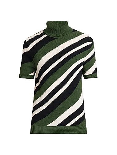 Свитер от Dolce & Gabbana, изготовленный в Италии, отличается смелыми диагональными полосками, гольфом и короткими рукавами.