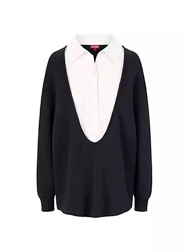 Свитер Coast от Staud выполнен в свободном силуэте с опущенными плечами. Он изготовлен из смеси хлопка и кашемира, дополнен акцентом в виде кнопочного нагрудника из хлопкового поплина.