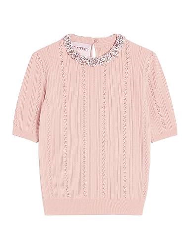 Свитер Valentino Garavani из вышитой шерсти с отделкой из камней и замшевым элементом, Италия
