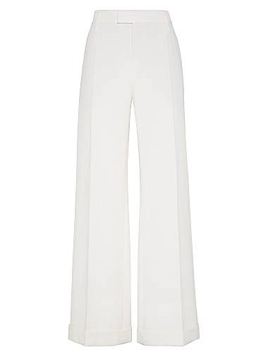 Свободные расклешенные хлопковые льняные брюки с монодекорацией, Brunello Cucinelli