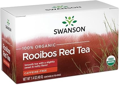 Swanson Органический красный ройбуш, 20 пакетиков, альтернатива кофе, сладкий и ореховый вкус