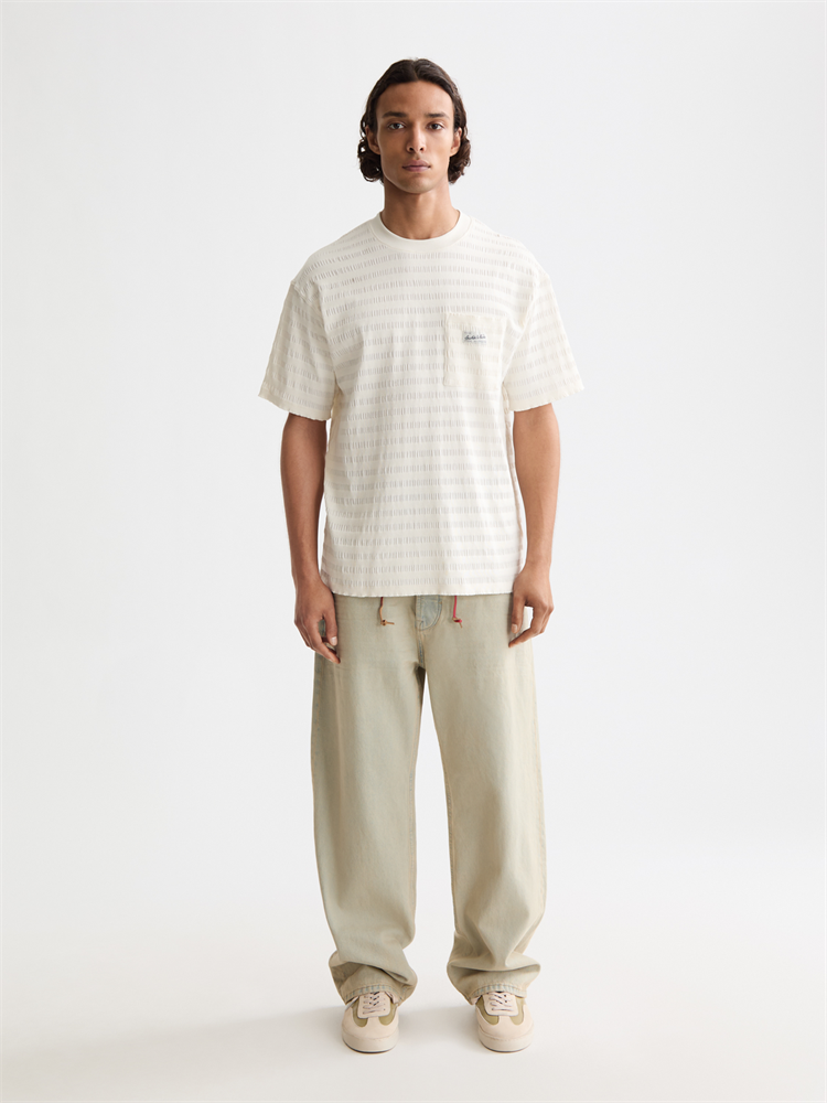 Эта футболка с текстурной поверхностью и горизонтальными элементами идеально подходит для создания непринужденного образа.