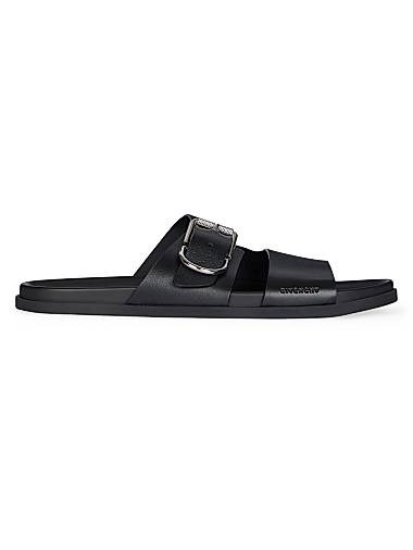 Текстурированные кожаные плоские сандалии Givenchy Voyou с двойным ремешком и регулируемой пряжкой
