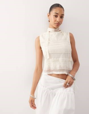 Текстурированный джерси-топ с высоким воротником и комплектом из кружева и шарфа от Reclaimed Vintage