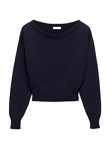 Тёмно-синий хлопковый лонгслив Prada с длинными рукавами, приталенным кроем и ребристыми манжетами