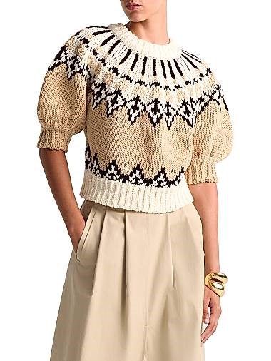 Теплый свитер с короткими рукавами Puff-Sleeve Marty Fair Isle из 100% хлопка Mako от Altuzarra