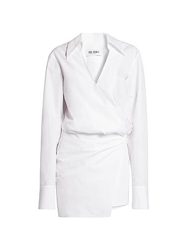 The Attico Мини-платье-рубашка из 100% хлопка с драпировкой и V-образным вырезом, Италия