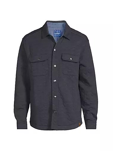 Куртка-рубашка Cobble Hill от Tommy Bahama выполнена в стиле зигзага с кнопочным закрытием спереди.