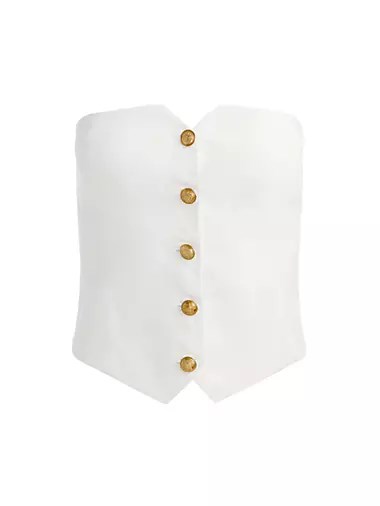 Топ без бретелек Kelcey от Alice + Olivia выполнен из смеси льна и вискозы с застёжкой на золотистые пуговицы.